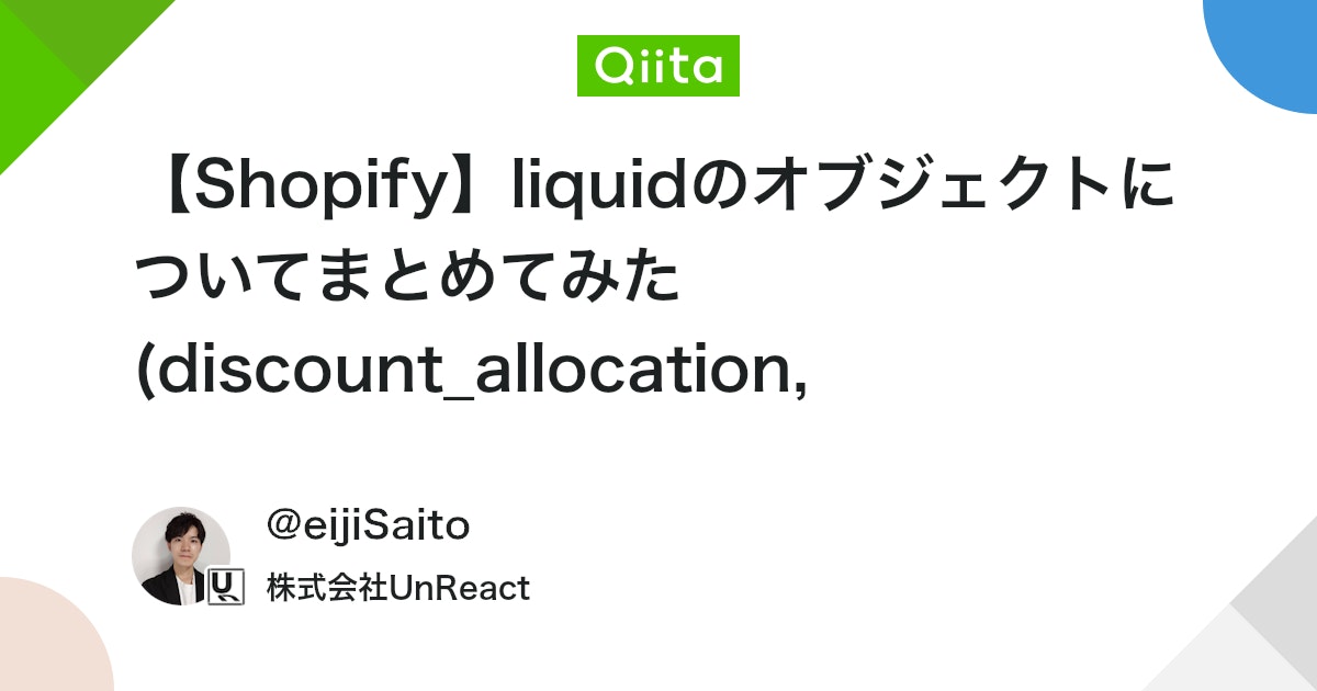 はじめにこの記事では、Liquidオブジェクトについて日本語訳したものです。discount_allocation、discount_application、external_videoのオブジェクトをまとめていきます。こちらを参考にしました。discount_...