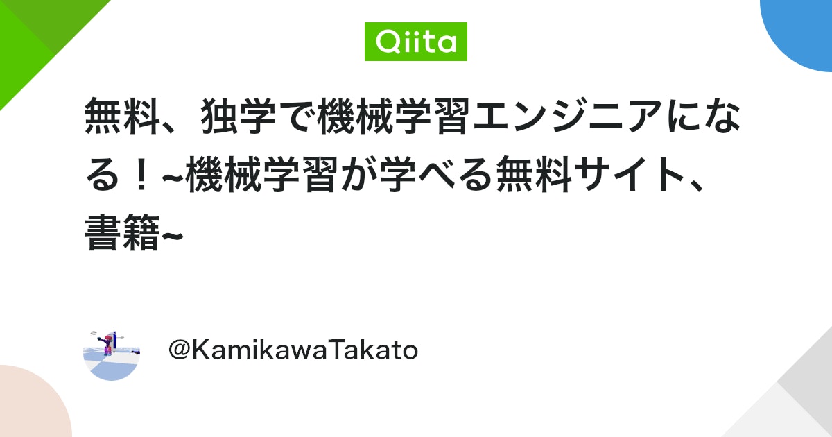 無料、独学で機械学習エンジニアになる!~機械学習が学べる無料サイト、書籍~ - Qiita